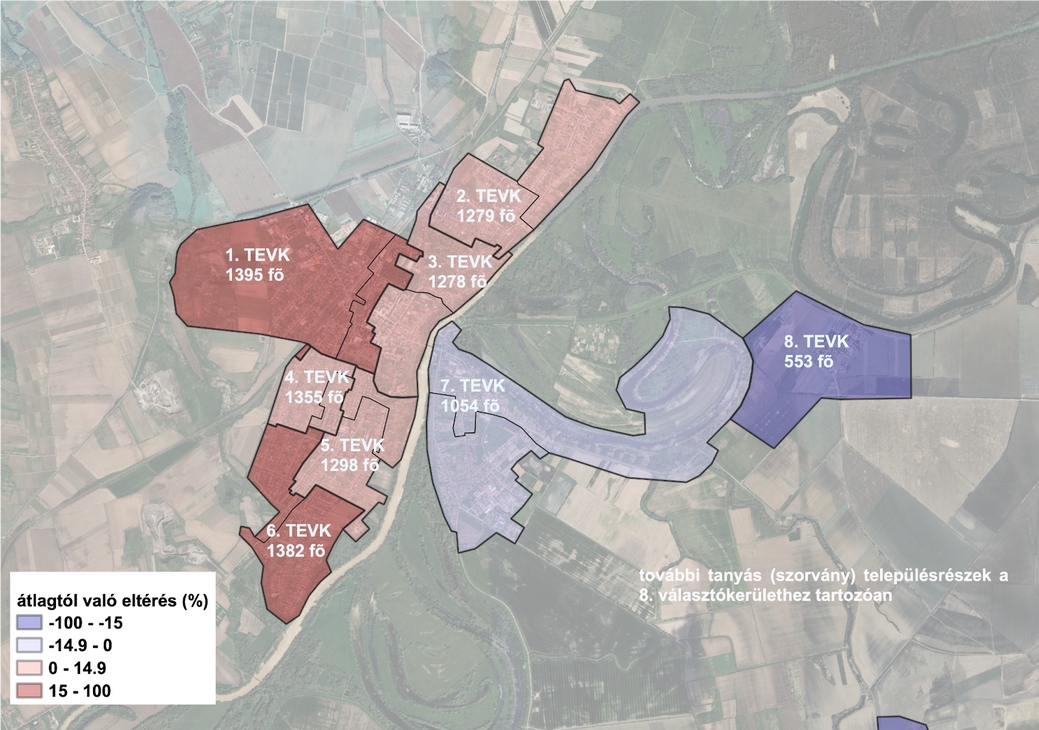 Sajnos azonban előfordul, hogy a fenti elvárások nem teljesülnek. Erre a legfrissebb példa Sárospatak, ahol november 3-án jelent meg a jegyző határozata az új kerületi beosztásról. A határozatból látszik, hogy három választókerület tekintetében az eltérés meghaladja a törvényes maximumot: az 1. kerület 16,18%-al, a 6. kerület pedig 15,18 %-al magasabb az átlagnál. Azonban ennél súlyosabb a helyzet a 8. választókerületben, ahol közel 54 százalékkal kevesebb a választópolgárok száma az átlagnál.
